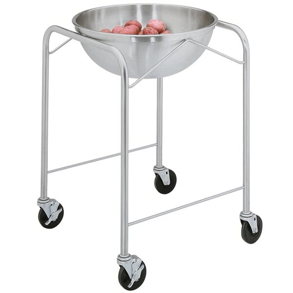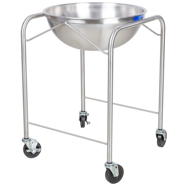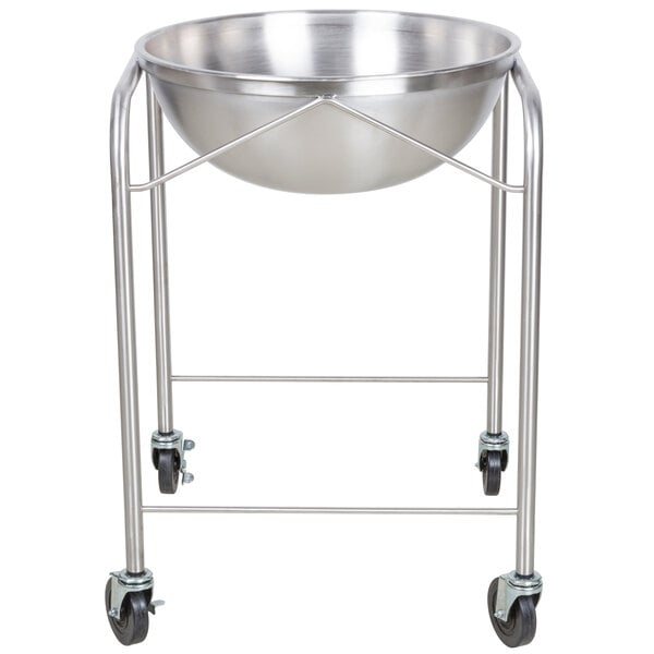 Strong enough for any mixing job, this large, durable stainless steel stand with mixing bowl is sure to become a staple in your commercial food prep area. It's perfect for preparing a variety of bulk foods, from salads to sauces! Easily roll it anywhere in your kitchen or prep area to save time and trips back and forth to the walk-in or storage area. The bowl resists stains and scratches, and can be reused time and again without the worry of it warping or denting.