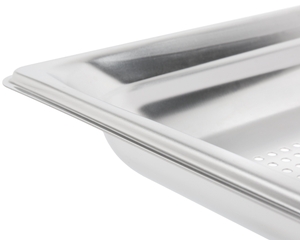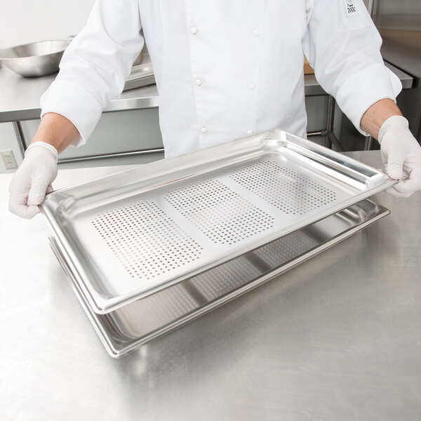 When you need to steam vegetables or meats, wash greens, or drain seafood, this perforated food pan is a great choice! The drain holes allow water to run through to keep food more appetizing during the prep and cooking stages. Besides that, it has a durable stainless steel construction and tapered corners that make pouring food easier.