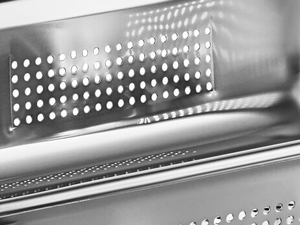 This perforated pan is made of 22 gauge, 300 series stainless steel for durability.
