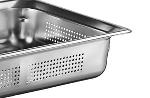 When you need to steam vegetables or meats, wash greens, or drain seafood, this perforated food pan is a great choice! The drain holes allow water to run through to keep food more appetizing during the prep and cooking stages. Besides that, it has a durable stainless steel construction and tapered corners that make pouring food easier.