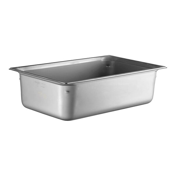Purchased for a cold salad bar, very good quality. The bottom is rounded which does not allow it to stand strait on a table. Otherwise it is a strong pan that holds up well.