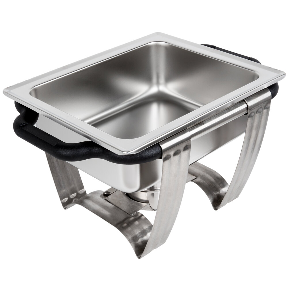 Specifically designed to make your buffet more appealing, the Vollrath 99870 4.1 qt. Dakota half size rectangular includes everything you need to cater in style, without sacrificing functionality. A trendy matte finish makes this chafer a contemporary addition to modern catering, while a tubular design adds structural integrity to the stackable frame for unbeatable reliability, even under everyday use.