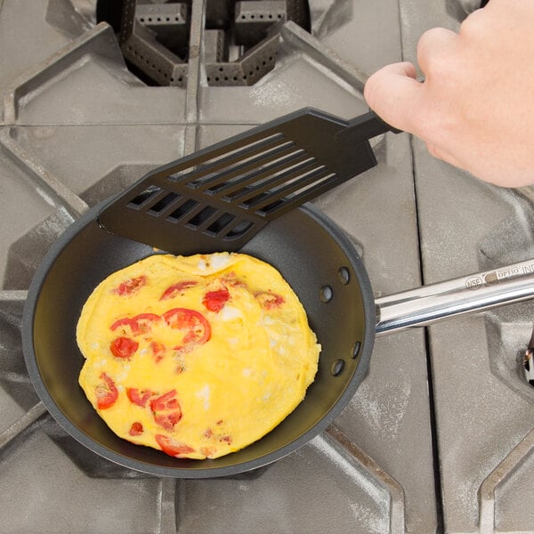 I really love using this pan for cooking eggs - scrambled, omelets, or sunny side up. I already had a lid that fits perfectly to help me cook the sunny side up eggs. All I do is spread a little bit of oil on the pan and cook them. They slide ride off with a little bit of a shake. And cleanup is a breeze. Water pressure from the sink will pretty much get everything off. The handle gets a little hot near the pan itself, but at the end it stays cool. The handle is a slight oval shape, so it doesn't just completely roll in your hands. When it's time to get another pan, I plan to reorder this one. It holds heat very nicely with the thick aluminum clad bottom. Highly recommend!