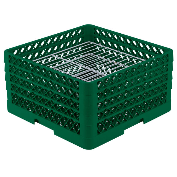 Capable of holding bulk loads of plates, this Vollrath PM3008-4 green Traex® plate rack is perfect for getting your plates clean in the hectic setting of a busy restaurant! With 30 compartments for plates with diameters ranging from 8" to 8 3/8" and heights up to 1", this rack is perfect for washing, storing, and transporting china. The evenly spaced compartments also prevent your plates from moving around during the wash cycle, limiting potential damage while ensuring cleaner china and faster drying times. The Traex® Plate Crate is made of a durable, co-polymer plastic which combines with the powder-painted wire grates to make this rack tough enough to withstand repeated use, yet gentle enough to not chip or break your plates.