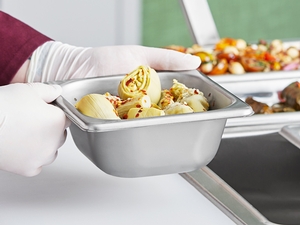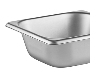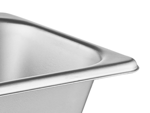 This steam table pan features reinforced corners that add strength where the pan takes the most abuse. The corners ensure the pan fits tightly in food wells, maximizing temperature retention for improved food quality and, most importantly, food safety. They also make the pan easier to carry and increase its resistance to breakage or warping.