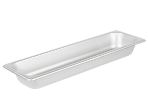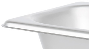This steam table pan features reinforced corners that add strength where the pan takes the most abuse. The corners ensure the pan fits tightly in food wells, maximizing temperature retention for improved food quality and, most importantly, food safety. They also make the pan easier to carry and increase its resistance to breakage or warping.