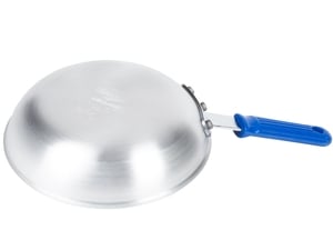Overall, this is a great pan. The nonstick coating has lasted a very long time. And it’s very slippery. The handle is very soft and feels cool. It seems very well built. I would give it five stars if it wasn’t for one issue that only affects the small 8 inch pan. The 8 inch frying pan tips over. It seems to have the same handle as the larger diameter frying pans. It is a great handle, but it is so heavy that when you put the frying pan on a flat surface the handle tips it over so that it will not sit flat. I remedy this by pulling off the blue silicone handle and cutting about an inch And a half off of the end of the handle. and then had to drill a new hole and slide the handle back on which was a lot of work. For that reason, I believe they need to fix the handle.