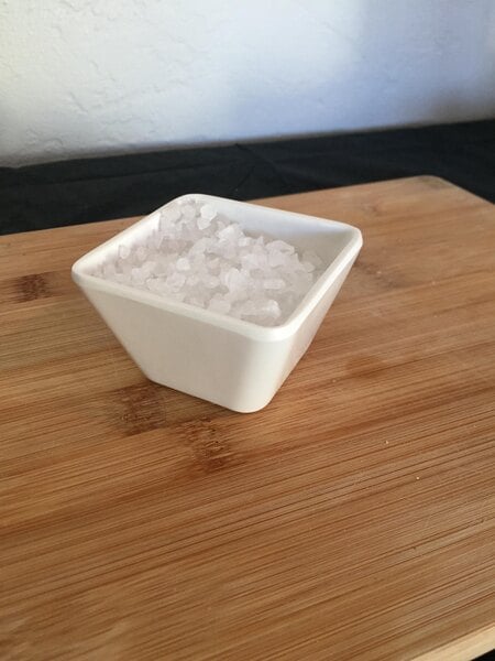 Made of heavy melamine, this 3 ounce dish safely holds ingredients without easily tipping. The white shines beautifully. The opening is square, allowing multiples in a line, using space efficiently.