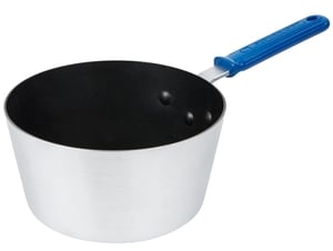 Great pan but mine came so dented it looked like a forklift ran over it, chips completely through the non stick coating on this and the other sauce pan and the frying pan in the same order and they were clearly packed up that way. But, this one specifically should never have been shipped, even after getting it as round as I can, it can't really use it with a lid, I'm going to guess the non stick isn't going to last very long. Return shipping was half more than half the cost of the pan, so just keeping it. But really disappointed this and the others were packaged up at all, rethinking from purchasing from webstaurant in the future.