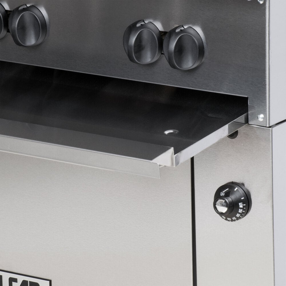Each of the 6 burners on this range delivers 30,000 BTU of heating power. The ample-sized lift-off grates are perfect for supporting your largest stock pots and frying pans. For your medium-volume baking and warming needs, this range has a standard oven base. The oven has a temperature range of 250-500 degrees Fahrenheit and a 35,000 BTU burner for efficiency.