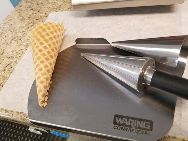 I've been making waffle cones for years but did not realize there was such a thing as a "forming tool" until I saw someone on TV use it and knew I had to have one! I was thrilled Webstaurantstore.com carries a variety of sizes. I love Waring products and I love that a small size is available since most adults don't like eating a large cone. Additionally, it's always perfectly shaped and you don't burn your fingers! It is a bit pricey but knowing I'll never have to buy another one in this lifetime - it's worth every penny! A must buy if you make your own waffle cones.