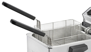 Twin steel wire baskets are also included with this deep fryer. Each basket has a 3 lb. food capacity, allowing for you to fry ample amounts of your delicious french fries and chicken tenders at a time.