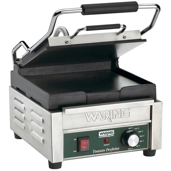 Waring WFG150 Tostato Perfetto Smooth Top & Bottom Panini Sandwich Grill - 9 3/4" x 9 1/4" Cooking Surface - 120V, 1800W