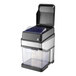 This unit features a durable, commercial-grade stainless steel housing with a compact countertop design to save space. It includes a 5 lb. ice cube hopper and a 10.5 lb. removable ice bucket. Its built-in interlock protection ensures the blades are only activated if the hopper lid is closed and the bucket is properly in place. This ice crusher comes with a removable drip grate to catch melted ice and water spills, and it has a cord wrap to neatly store the 6' power cord. It offers simple plug-and-play operation and requires a 120V electrical connection for operation.