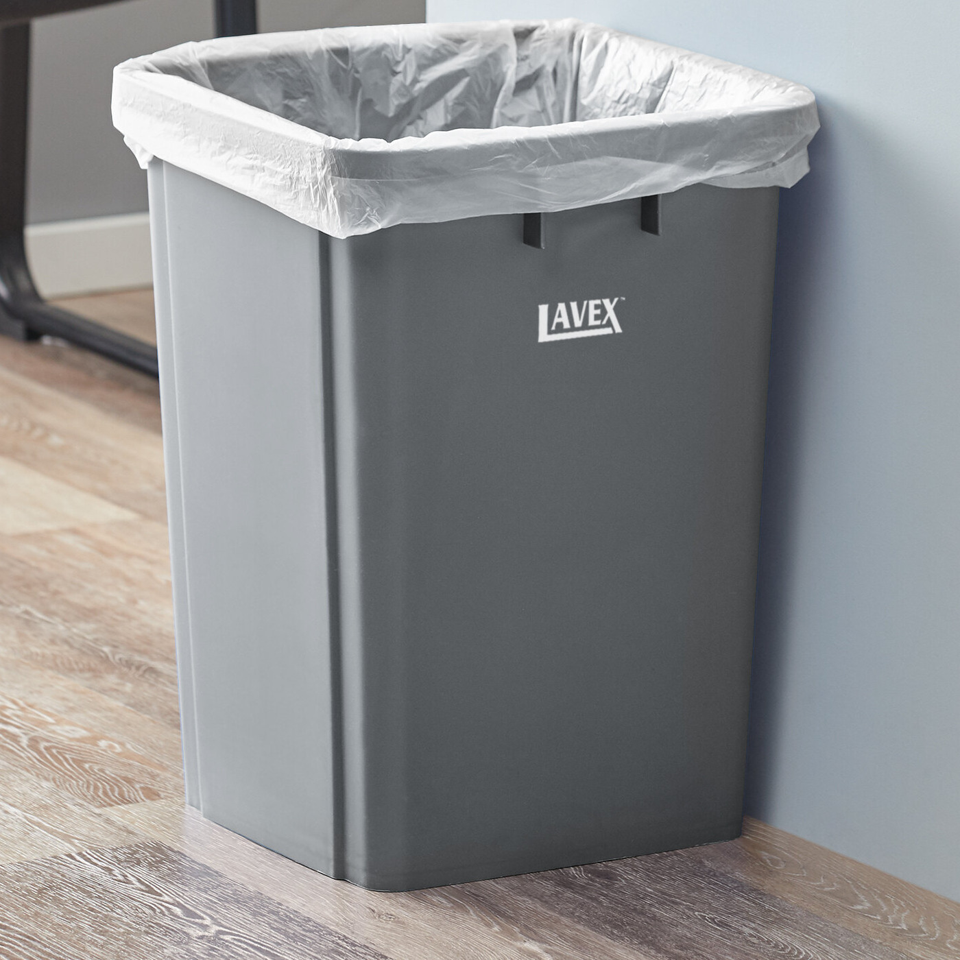 This Lavex 19 gallon gray square trash can provides an excellent, compact solution for waste management when you don't have a lot of room to work with. With its square design that ensures a superior fit in tight spaces, this trash can is sure to keep your facility clean and organized!