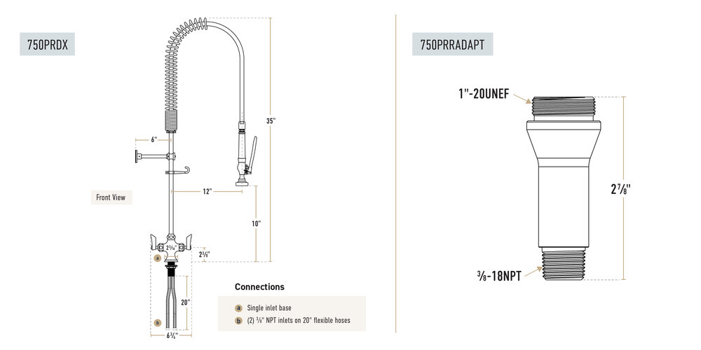 - Includes 6" add-on faucet (2 GPM), 18" riser, and 6" wall bracket