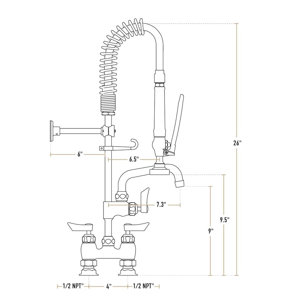 - Item #: 750prdl46Waterloo 1.15 GPM Low Profile Deck-Mounted Pre-Rinse Faucet with 4" Centers and 6" Add-On Faucet