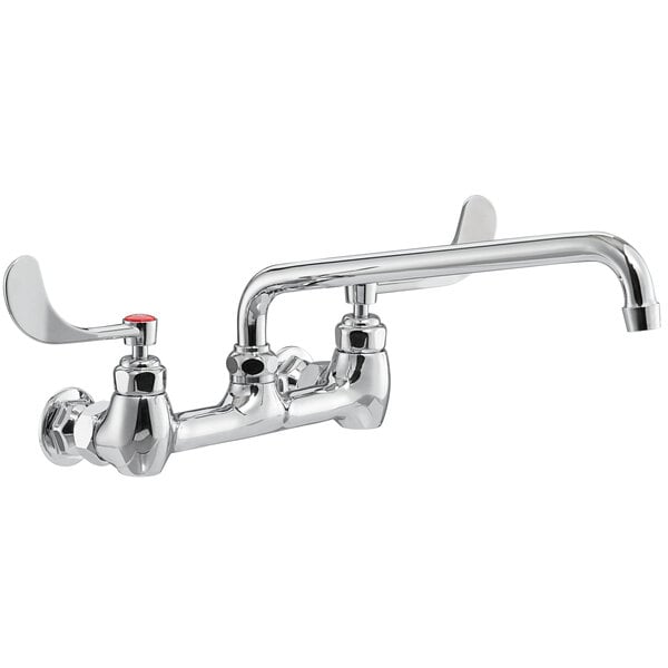 For convenient use and more sanitary hand washing, this model comes with 4" blade style wrist handles. This type of handle lets employees turn the water on or off by using the wrist rather than the fingers, reducing the transfer of germs for increased sanitation.