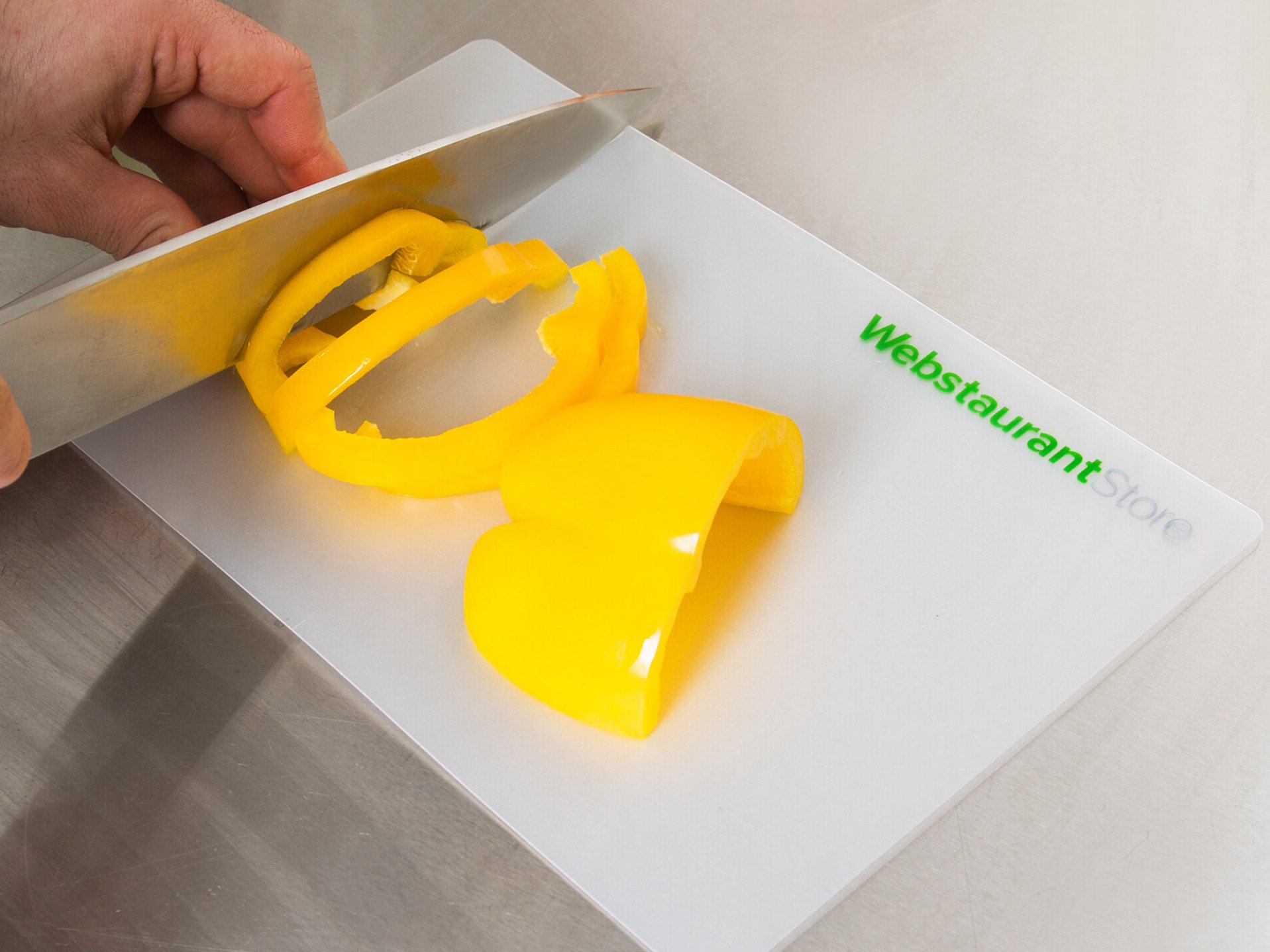 This cutting board is perfect for cutting up brownies in the baking tray. I used to chop them up on the table but it would make such a mess with crumbs flying on the table and the floor. I cut this board to fit the baking tray and chop the brownies up in the tray so the crumbs stay in the tray and there is less cleanup. This way the tray is protected from knife damage and the brownies are not touching the aluminum.