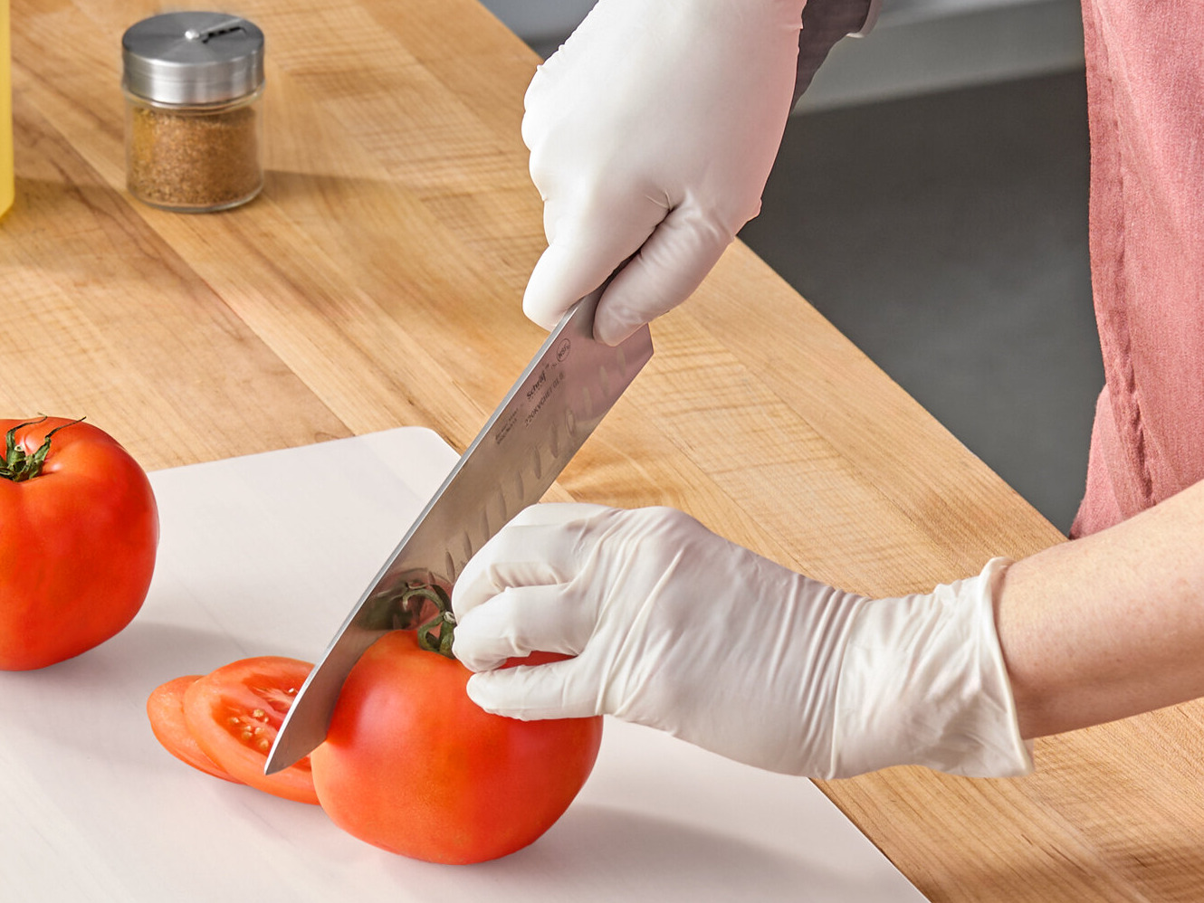 This cutting board is perfect for cutting up brownies in the baking tray. I used to chop them up on the table but it would make such a mess with crumbs flying on the table and the floor. I cut this board to fit the baking tray and chop the brownies up in the tray so the crumbs stay in the tray and there is less cleanup. This way the tray is protected from knife damage and the brownies are not touching the aluminum.
