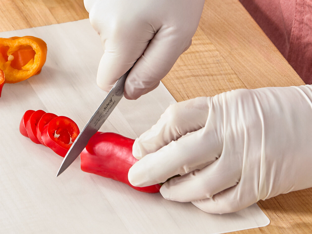 This cutting board is perfect for cutting up brownies in the baking tray. I used to chop them up on the table but it would make such a mess with crumbs flying on the table and the floor. I cut this board to fit the baking tray and chop the brownies up in the tray so the crumbs stay in the tray and there is less cleanup. This way the tray is protected from knife damage and the brownies are not touching the aluminum.