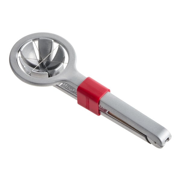 This handy Westmark egg wedger is made of epoxy-treated cast aluminum. It has stainless steel wires that cut the egg in six, equal wedges. Fits in small compartments for easy egg cutting on-the-go, making it a perfect fit for caterers who are always on the move, or cafe kitchens that don't have much space for so many kitchen hand tools. To use, simply place your food in the center of the unit and press down with moderate force. This will give you six even wedges which make plating quick, and consuming easy. The product opens up for easy cleaning, and has a plastic band for safe and compact storage.