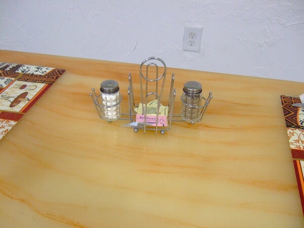 Not much to say about this besides it is exactly what you need for a small restaurant. Place to hold the menu and put condiments that your customers need