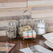 Put one on every table at your business so your guests have all the essentials. The looping handle makes the caddy easy to carry, and unique-looking ball feet allow it to slide easily without damaging your tabletops.