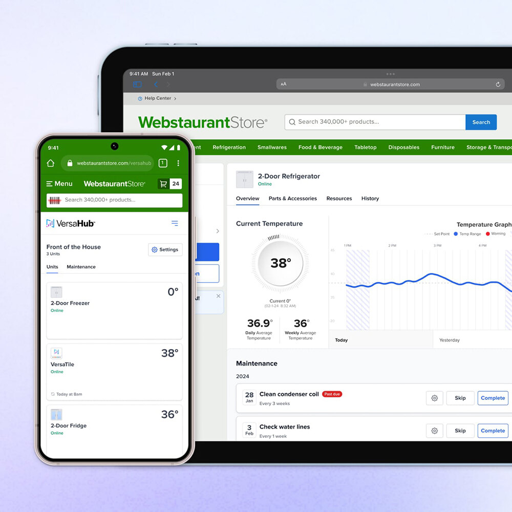 Easily add and manage your commercial equipment on the go with VersaHub, your mobile-friendly business and asset management solution from WebstaurantStore. Access assets from any device, organize and monitor equipment, and manage maintenance seamlessly through an intuitive interface. Enjoy effortless dashboard monitoring without additional logins.