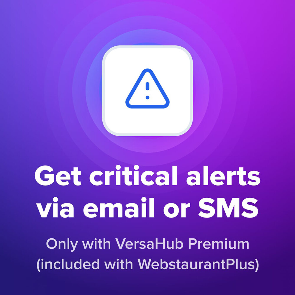 Enjoy peace of mind with real-time alerts on your equipment’s status, such as temperature, open doors, airflow blockage, refrigeration, and other system errors with VersaHub Premium, included with a WebstaurantPlus subscription. Set parameters and audible alarms to detect unsafe conditions and notify up to 10 contacts via text/email to help protect your investments, keep staff informed, and save thousands annually by addressing potential issues promptly.
