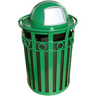 Witt Industries M3600-R-DT-GN Oakley 36 Gallon Green Steel Round Outdoor Decorative Trash Can with Push Door Dome Top Lid and Ring Accent Band
