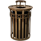 Witt Industries M3600-R-RC-GN Oakley 36 Gallon Green Steel Round Outdoor Decorative Trash Can with Rain Cap Lid and Ring Accent Band