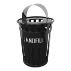 Combine style and utility with this Witt Industries Oakley Eco 36 gallon black outdoor landfill receptacle with metal hood top lid. Perfect for outdoor environments and high-traffic areas, this receptacle features a durable steel construction with a black powder-coated finish, ensuring long-lasting use. Large laser cut signage on the receptacle reads "Landfill," easily distinguishing its use, and the outer flat bar slated steel bar acts as a deterrent for graffiti.