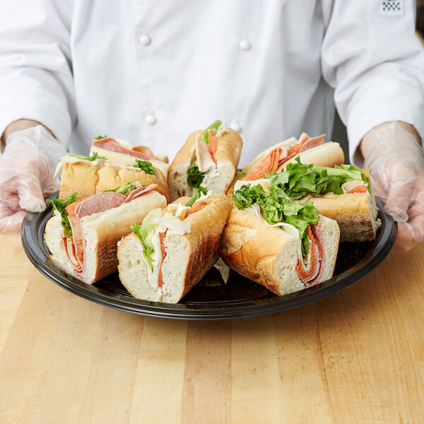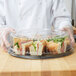 The A516PBL Caterline Casuals 16" round catering tray is perfect for selling prepared deli plates, veggie and dip trays, or pastry platters! This round catering tray is crack and crush resistant. Excellent for market, deli, or bakery use, this thermoformed tray is made of durable PET plastic, offering strength and visual appeal for a variety of tasks.
