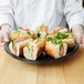 Excellent for all kind of catering needs. Good price disposable tray for sandwiches, pastries, fruit and all other needs. This is strong enough to hold 10-15 bog sandwiches.