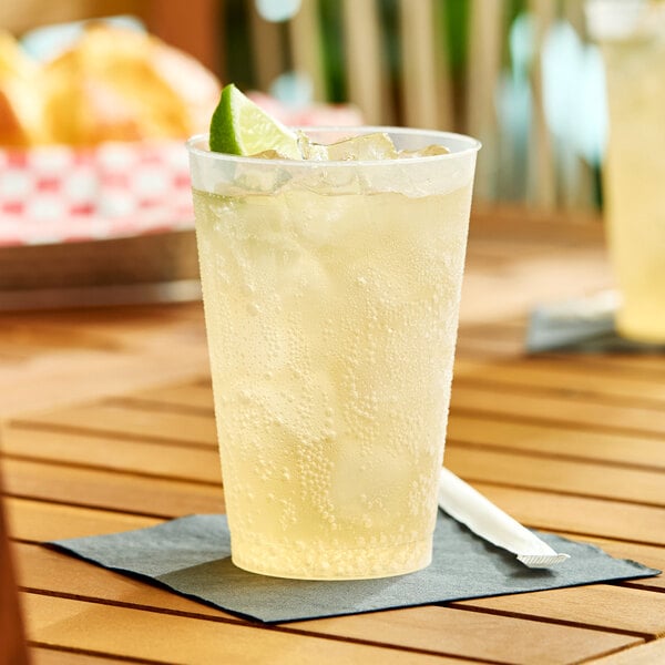 Made to last the entire duration of an event or party, it features a sturdy and flexible polypropylene construction that resists breakage. In addition to its beautiful appearance, the tumbler's textured surface ensures a secure grip, minimizing spills. The disposable design allows for quick and easy cleanup, letting you serve your signature drinks with both style and convenience.