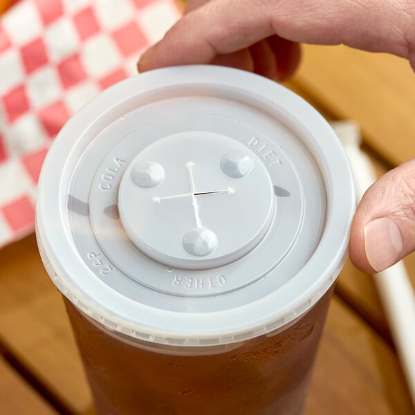 Transform your signature beverages into portable refreshments with the WNA Comet Frost-Flex translucent lid! This lid features a central straw slot that securely holds straws in place, preventing spills and ensuring an enjoyable sipping experience for customers. Additionally, it eliminates the need to remove the lid in order to take a sip or view the contents inside!