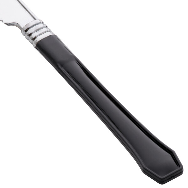 Combining the look of upscale flatware with the convenience of disposability, this knife is the perfect choice for all of your events. This plastic silver cutlery is disposable, so you won't have to waste any extra time washing large quantities of dishes. Plus, the attractive appearance makes it ideal for elegant dining environments!