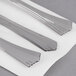 This flatware set features a 17" x 17" white, linen-like napkin rolled around a full set of stainless steel look, extra heavy weight plastic cutlery including a knife, fork, spoon. This pre-rolled set is a great way to save time and money. Just take it out of the box and it's ready to use. Plus, the whole set is disposable for quick and easy cleanup!