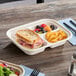 Enhance your take-out service while helping the environment with this World Centric 29 oz. 3-compartment compostable fiber container with Leaf Plus! This container is a perfect option for eco-conscious delis, restaurants, food trucks, and catering operations offering on-the-go service of signature menu items. It features 3 compartments that prevent food and flavors from mixing, allowing for a variety of foods to be contained at once. Plus, the exclusive Leaf Plus additive provides high-temperature grease and oil resistance up to 190 degrees Fahrenheit, offering excellent durability with no PFAS added.