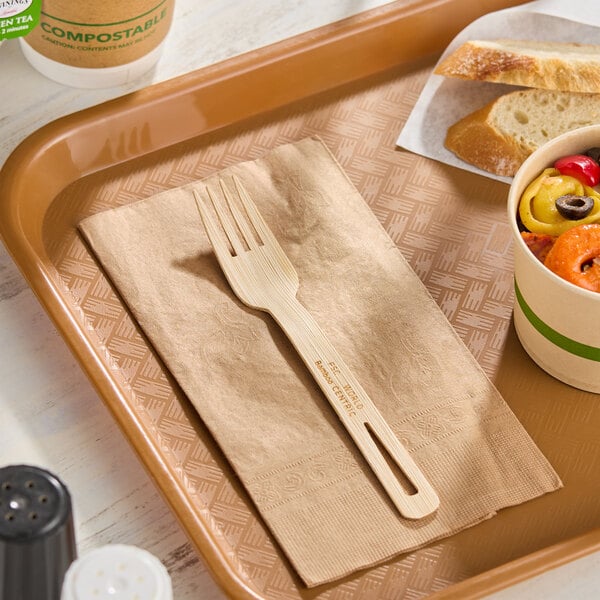 Equip guests with everything they need to enjoy your cuisine with this World Centric 6 11/16" compostable bamboo fork! Made of bamboo, this fork is perfect for the eco-conscious consumer. Not only is this bamboo fork naturally beautiful and strong, but it is also compostable, allowing for easy disposal and reducing plastic waste.