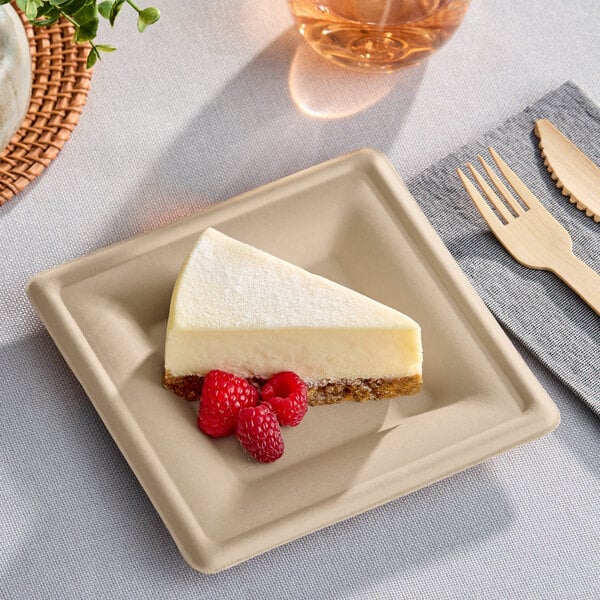 Serve your menu favorites while helping the environment with this World Centric 6" compostable square fiber plate! Crafted from unbleached plant fiber, this plate is an eco-friendly alternative to traditional paper or plastic options. Perfect for serving appetizers, snacks, and side dishes, this square plate elevates the appearance of your meal presentations and is disposable for added convenience. Additionally, this plate is compostable in commercial facilities, though one may not be available in your area, so be sure to check beforehand.