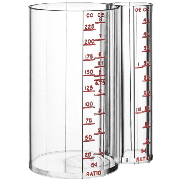 When something goes awry, don't go without your trusty soda dispenser. Instead, keep this Wunder-Bar PH10-35 brix cup on hand! This cup allows you to measure the 5:1 or 5.5:1 ratio of syrup to soda water. It's compatible with Select Wunder-Bar soda guns.