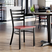 Products You May Need For Lancaster Table & Seating Black Finish Ladder Back Swivel Bar Stool with Mahogany Wood Seat