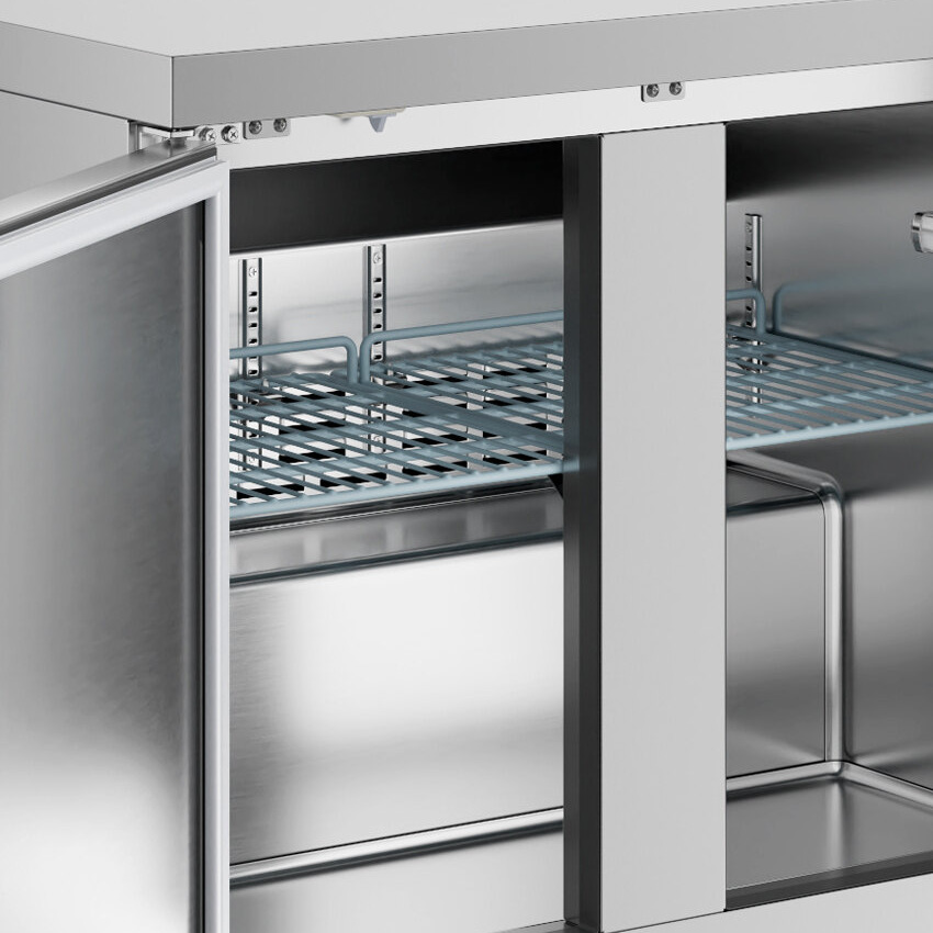 Because of its undercounter design, the unit effortlessly adds refrigerated storage space without requiring space devoted solely to its footprint. With a spacious refrigerated portion readily accessible through its door, the unit opens up to two shelves to help you organize your ingredients and best utilize the 8.7 cu. ft. interior.
