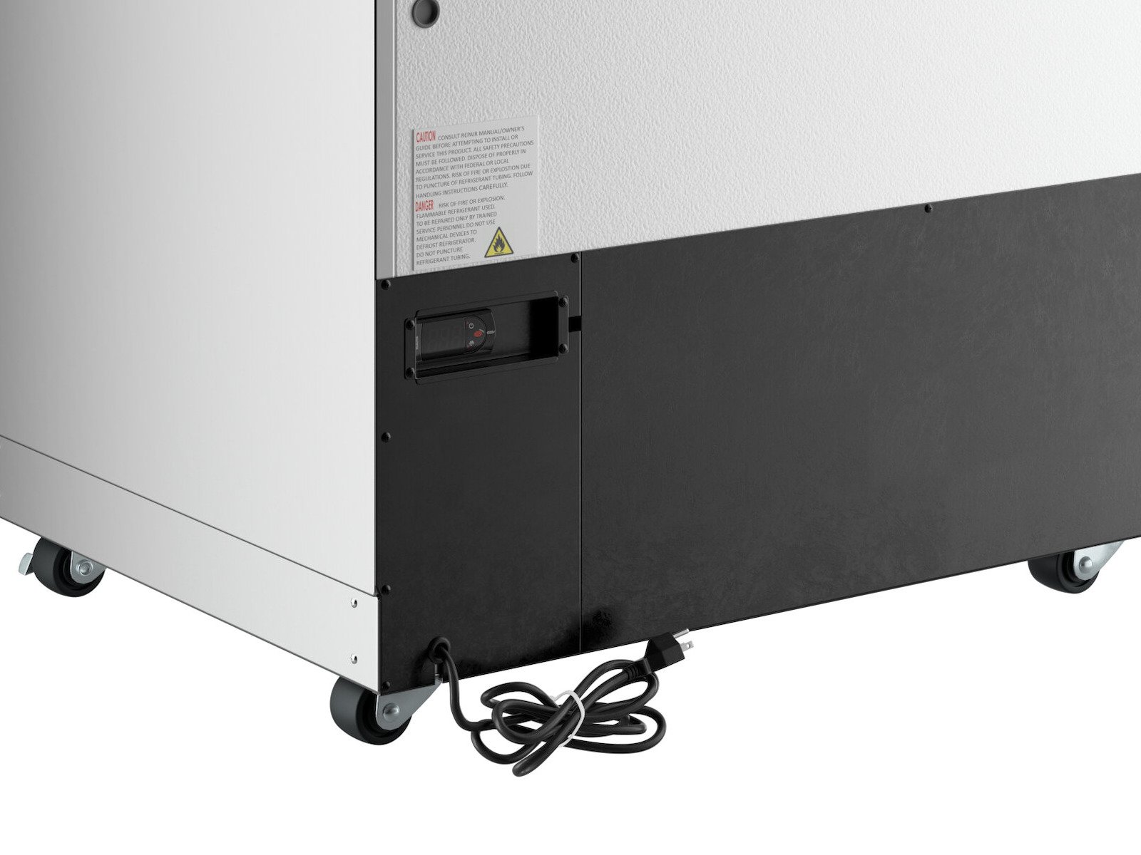 Audible alarms alert you to temperatures too high or low, extended door opening, and to clean the unit's condenser.