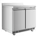 With a spacious stainless steel worktop surface for slicing, dicing, assembling, mixing, and other food prep tasks, the unit features a 3 1/2" backsplash for wall protection and a refrigerated storage space below. The refrigerated portion is readily accessible through the doors, which open up to 2 epoxy-coated shelves to help you organize your ingredients and best utilize the spacious interior.
