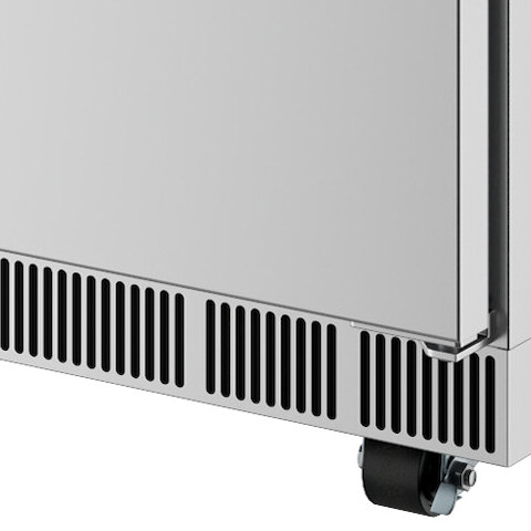 The self-closing and stay-open solid doors allow users to load the unit quickly and easily after a delivery, while the recessed door handles and magnetic door gaskets further expedite the loading process. This worktop refrigerator ensures optimal performance by operating with a 1/5 hp refrigeration system that circulates R-290 hydrocarbon refrigerant to maintain temperatures from 33 to 40 degrees Fahrenheit. R-290 refrigerant has an ozone depletion potential (ODP) of 0 and a global warming potential (GWP) of 3. The foamed-in-place polyurethane insulation helps to retain cold temperatures, which ensures that all food held in the unit remains at food safe temperatures and ready for preparation or direct service to customers!