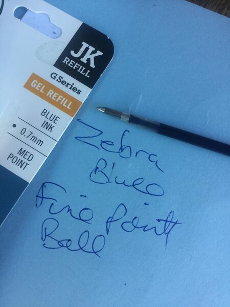 I have used this two pack of Zebra Blue Ink Roller Ball Gel Pen Refills before and was happy to see them available through Webstaurant for sure. The pen writes a dark color easily and very smoothly, however they do tend to smudge more easily than the standard pens. I would highly recommend.